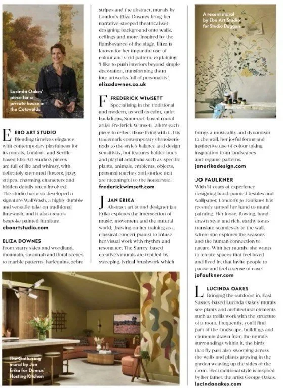 The latest issue of Homes & Gardens highlights A Gathering, a hand-painted mural by Jan Erika, commissioned for the Domus Hosting Kitchen.
