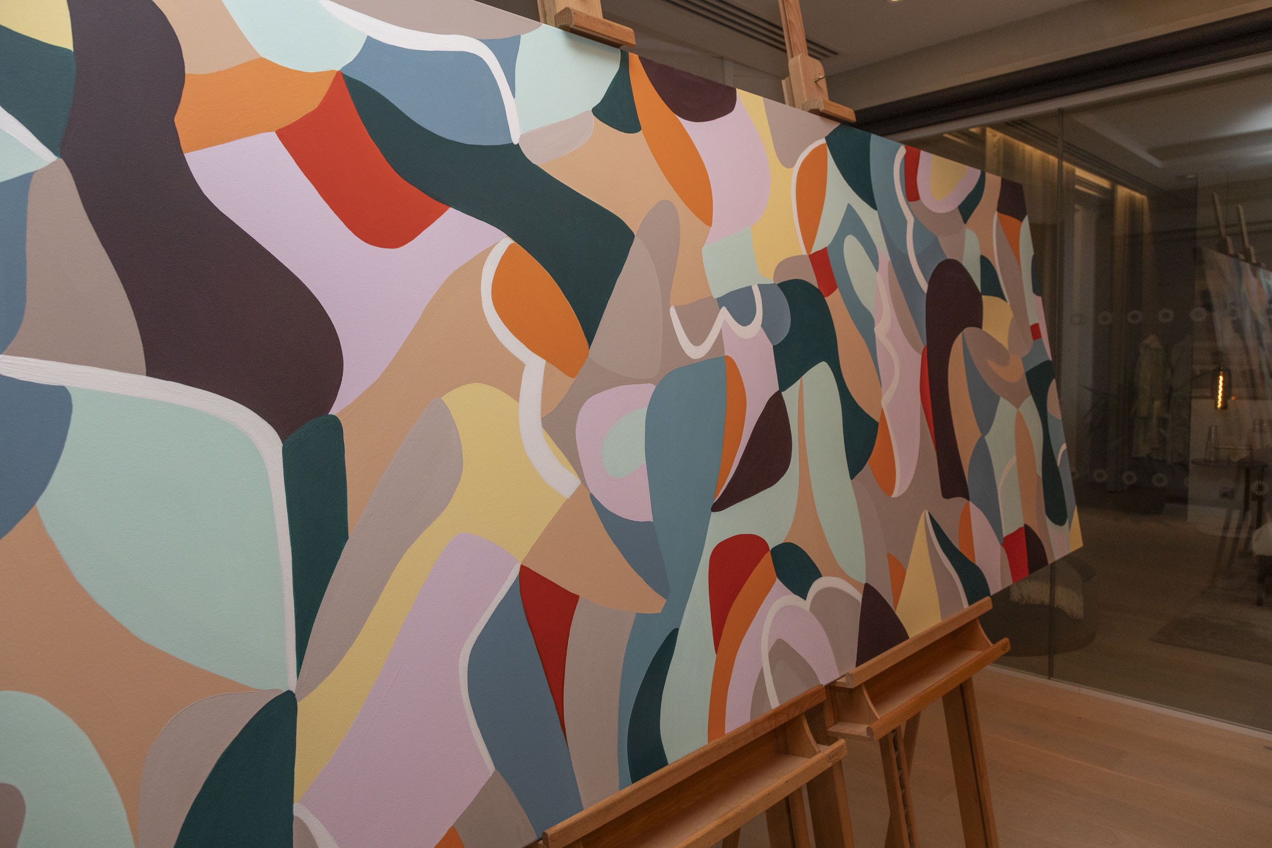 A private commission for the Motor Yacht SOHO by Benetti, this bespoke painting was created to complement the yacht’s interior palette and capture the spirit of Mediterranean living. Designed in dialogue with its surroundings, the work reflects the lifestyle, colours, and atmosphere of life aboard SOHO and the destinations it explores.